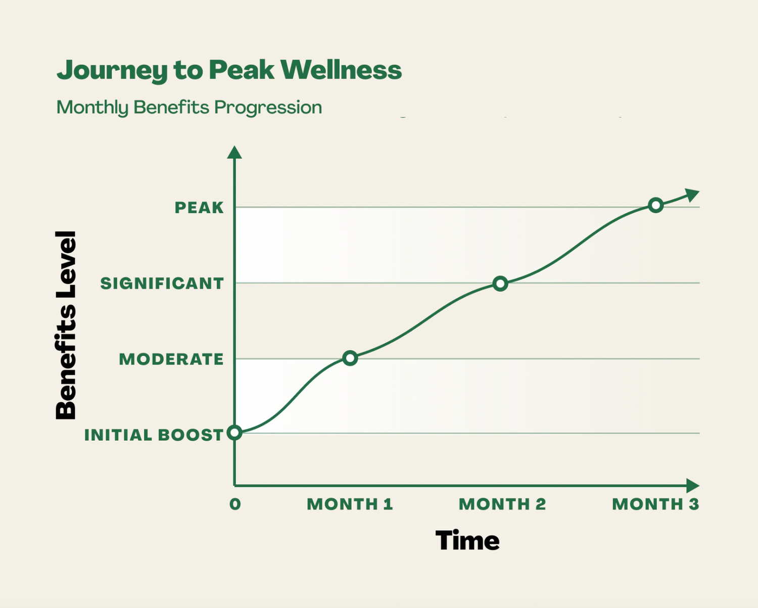 Your memory and focus sharpen. Mental clarity and productivity increase. You feel calmer and more balanced. - Month 3+
